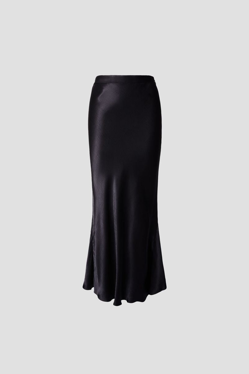 Hyro Skirt is a mid length skirt crafted in viscose satin for a luxurious look. Designed for a straight, high-waisted fit that relaxes slightly from hip to hem.
