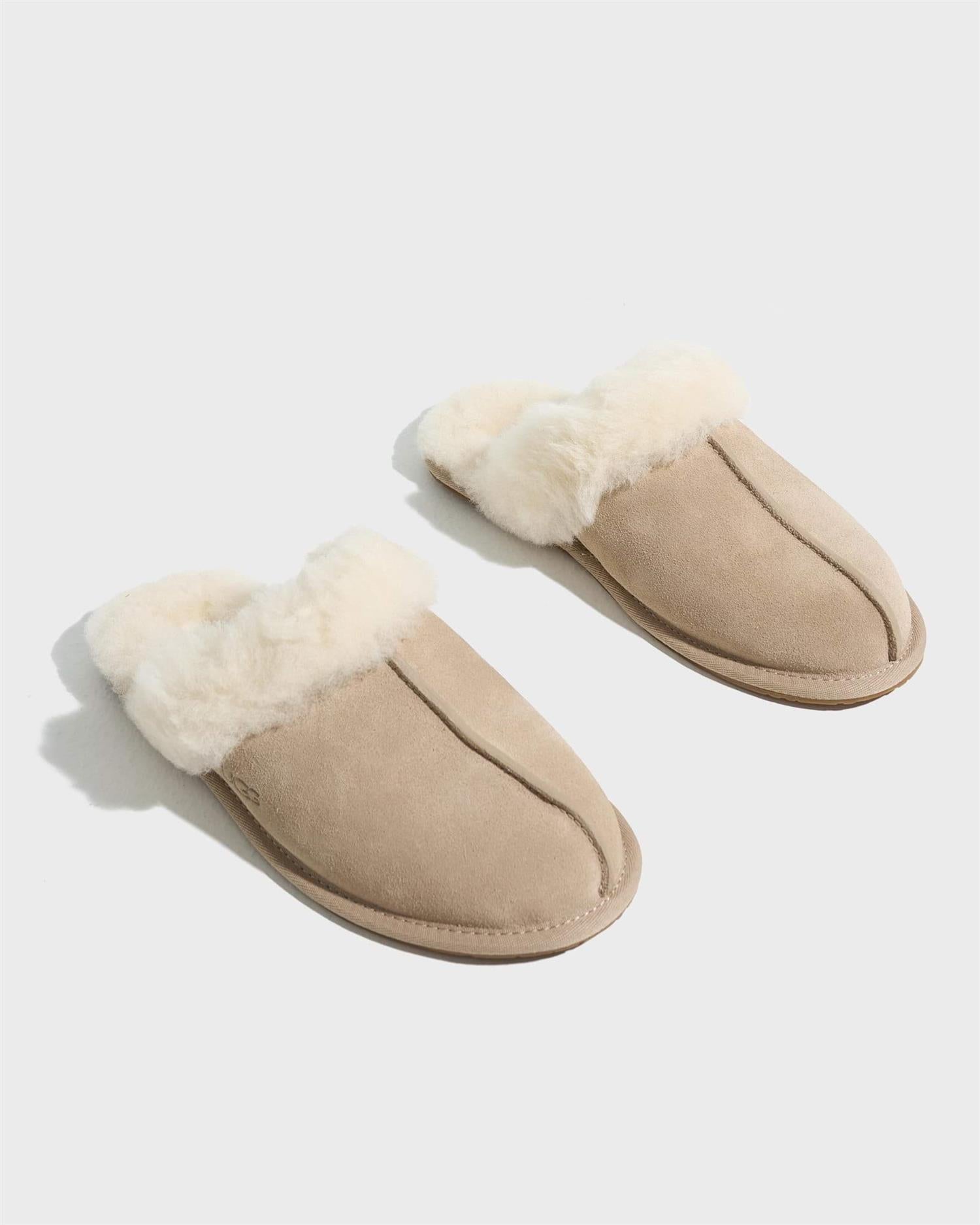 Tøffel i semsket skinn og saueskinn. Vipper du mellom to størrelser gå opp en størrelse.