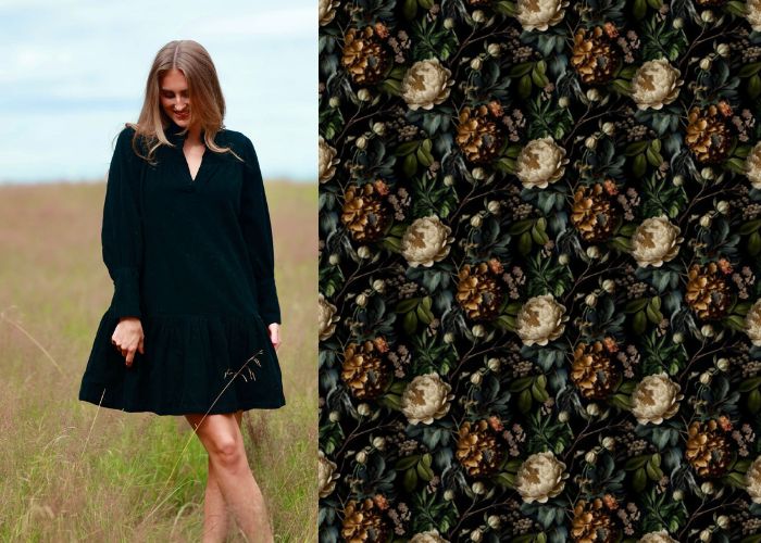 Lily Babycord Dress - Fall Peonies