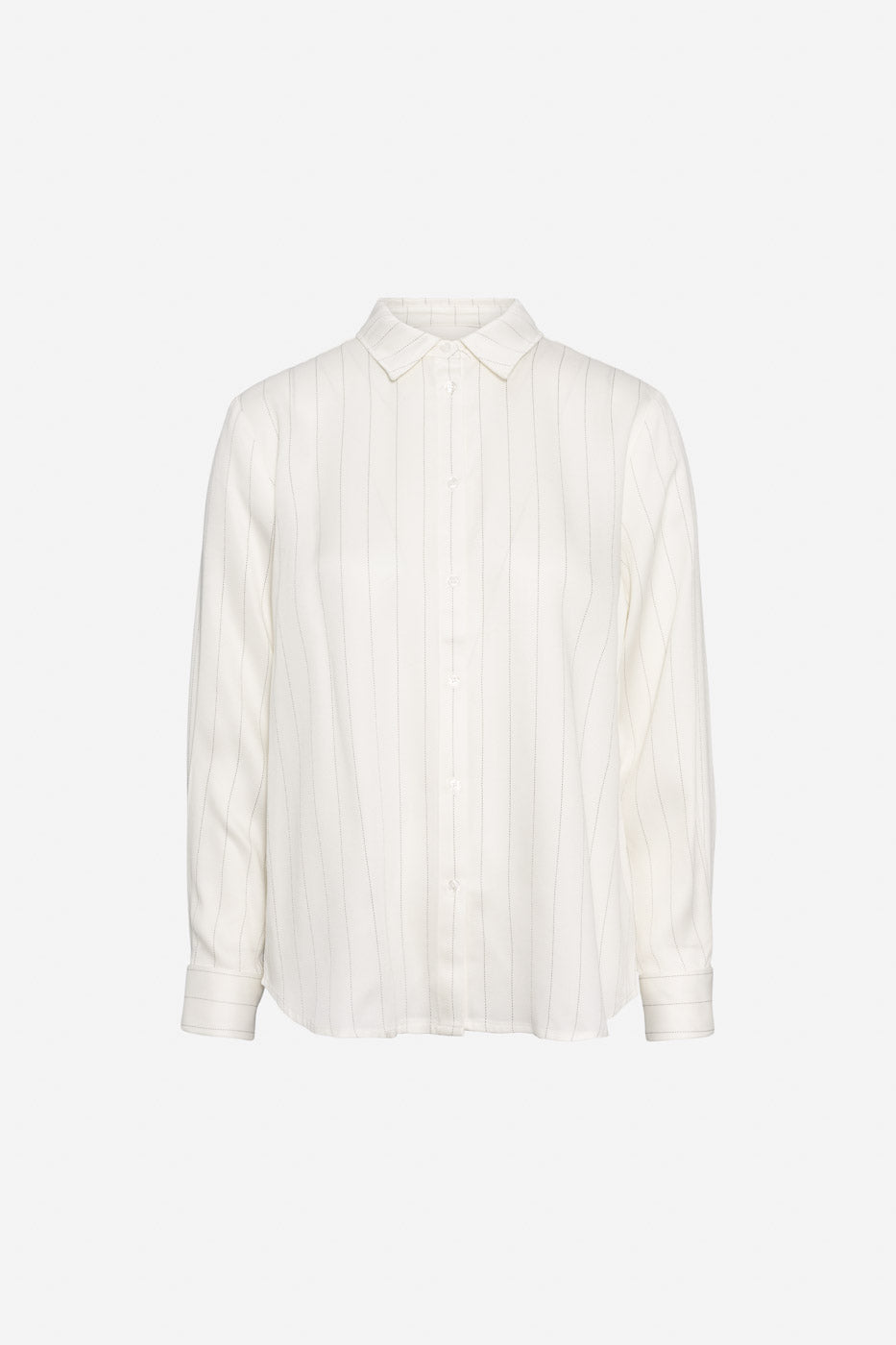 The Cilia Shirt is crafted from soft, drapey Tencel and comes in off-white with a subtle black pinstripe. Perfect on its own or paired with the matching Ava Trouser in the same pinstripe. It features long sleeves with folded cuffs and buttons, along with a button placket at the front. 100% tencel.