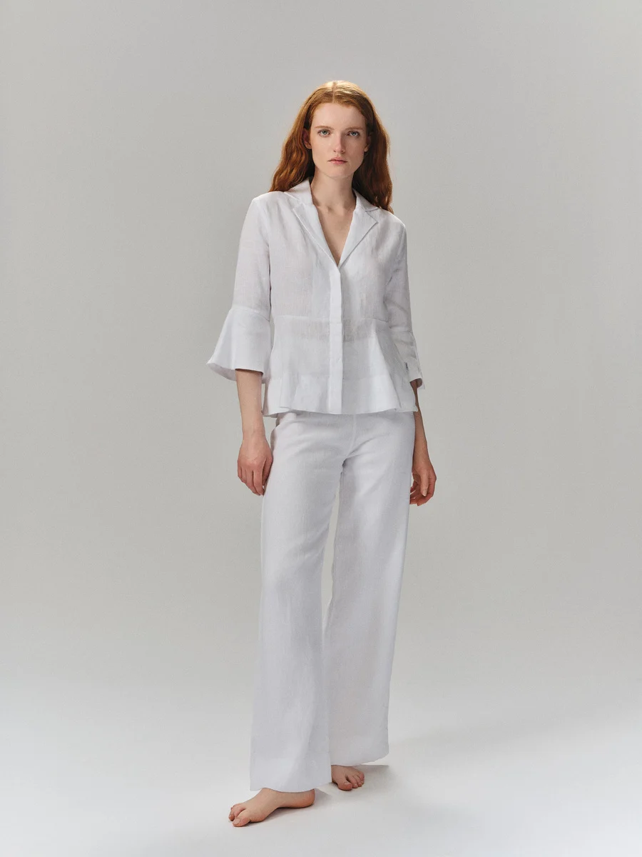 Guro linen shirt er i 100% lin. Blusen er innsvinget med skjulte knapper og 3/4 trompet ermer.