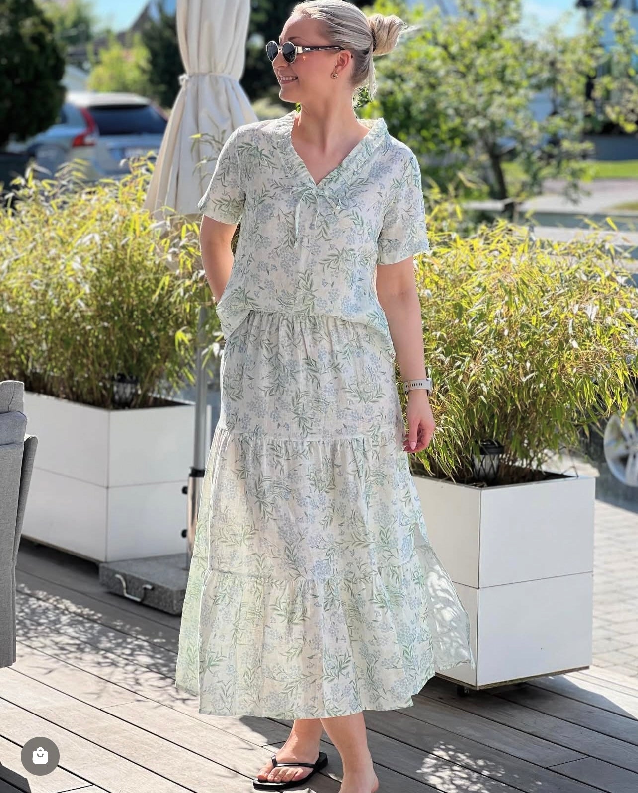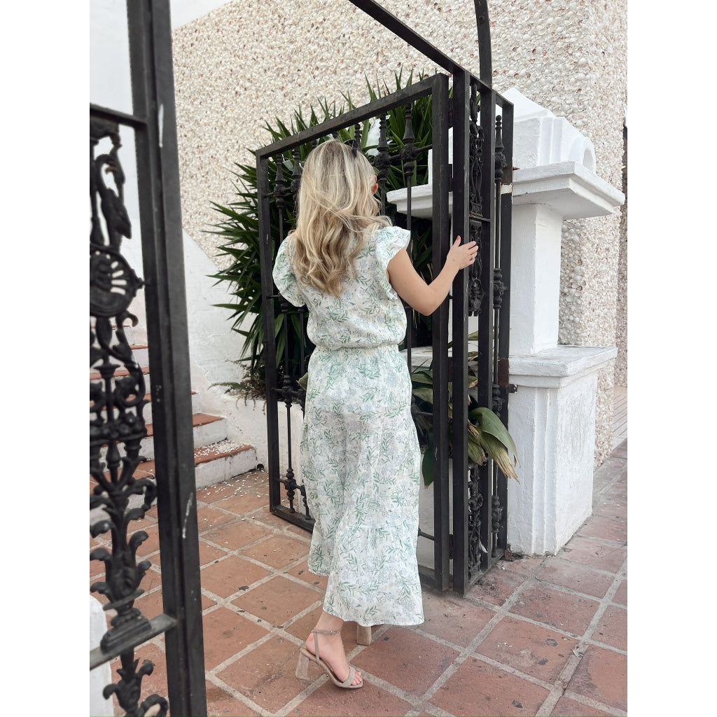 Amara Long Skirt-blue leaf print