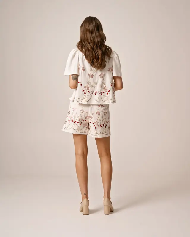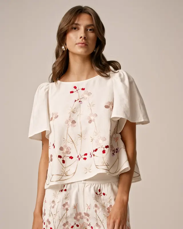 The Linen Top is cut in our elegant and fine quality of FSC certified linen and viscose. The top has a relaxed fit, round collar, short, flared sleeves and embroidered details. It has a button detail in the neckline.70% Rayon, 30% Linen - FSC Certified
