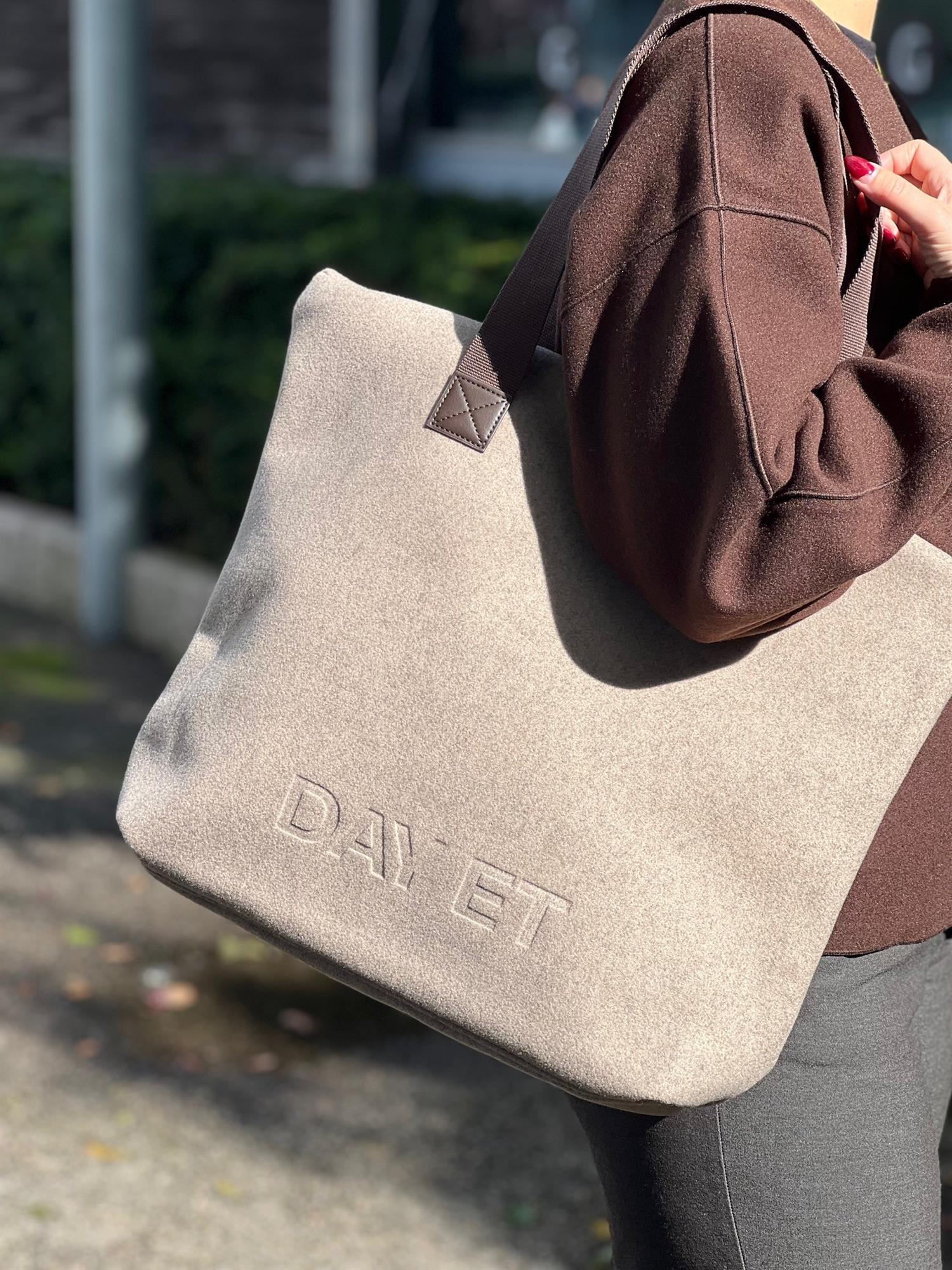En romslig shopper i et mykt ullmateriale med nedsenket glidelås og lange skulderstropper. Innvendig har den en lomme med glidelås for småting, slik at du enkelt kan holde orden på eiendelene dine. Et komfortabelt og praktisk valg for hverdagen med et varmt og enkelt utseende.