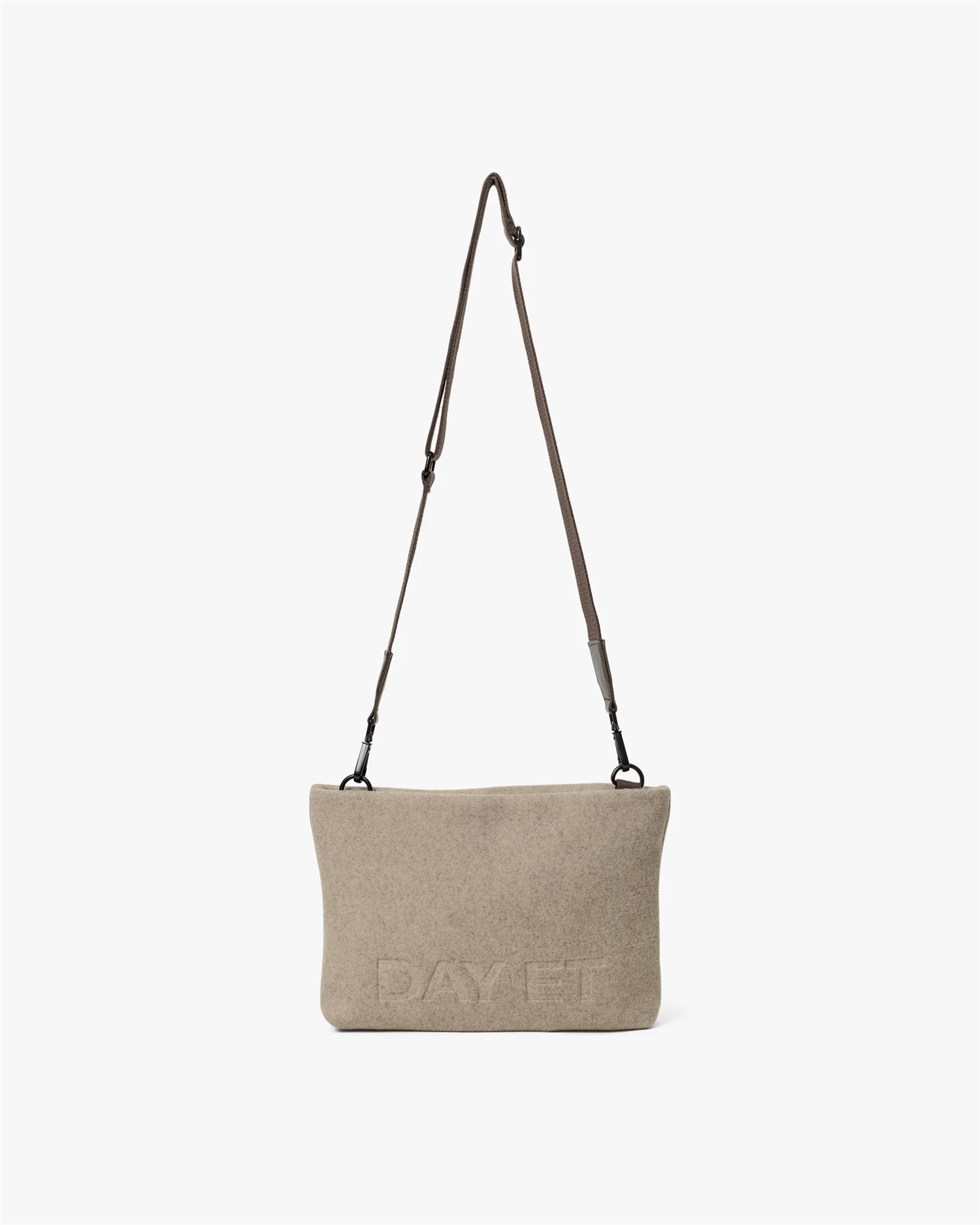 En allsidig veske i mykt ullmateriale som kan brukes som clutch eller crossbody. Den har nedsenket glidelås og en åpen innerlomme, og den justerbare, avtakbare stroppen gjør det enkelt å tilpasse den til dine behov. Et funksjonelt og stilig valg for både hverdagsbruk og stunder ute i det fri.