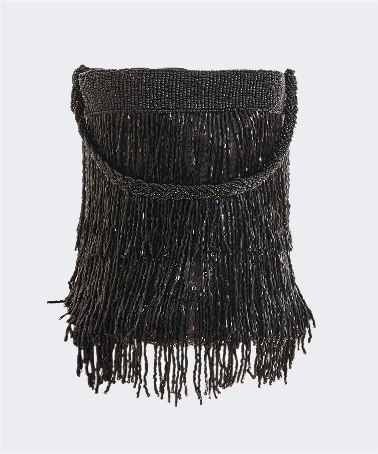 Introducing our Pearl Bag – the perfect statement piece that complements your style. This bag is designed with long beaded fringes adorned with lustrous pearls.Shell: 100% Polyester, Lining: 100%.