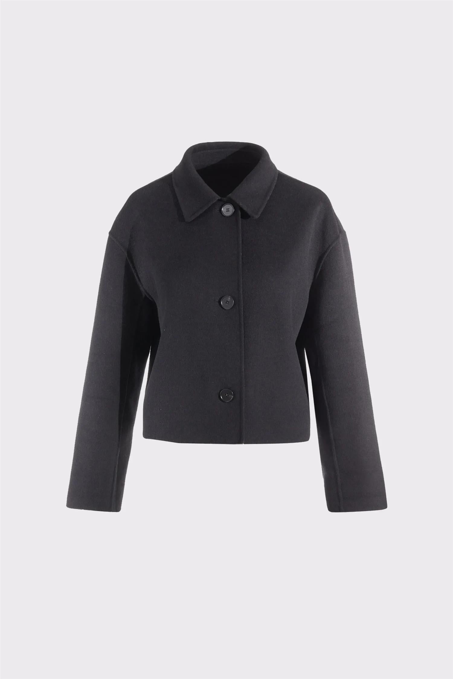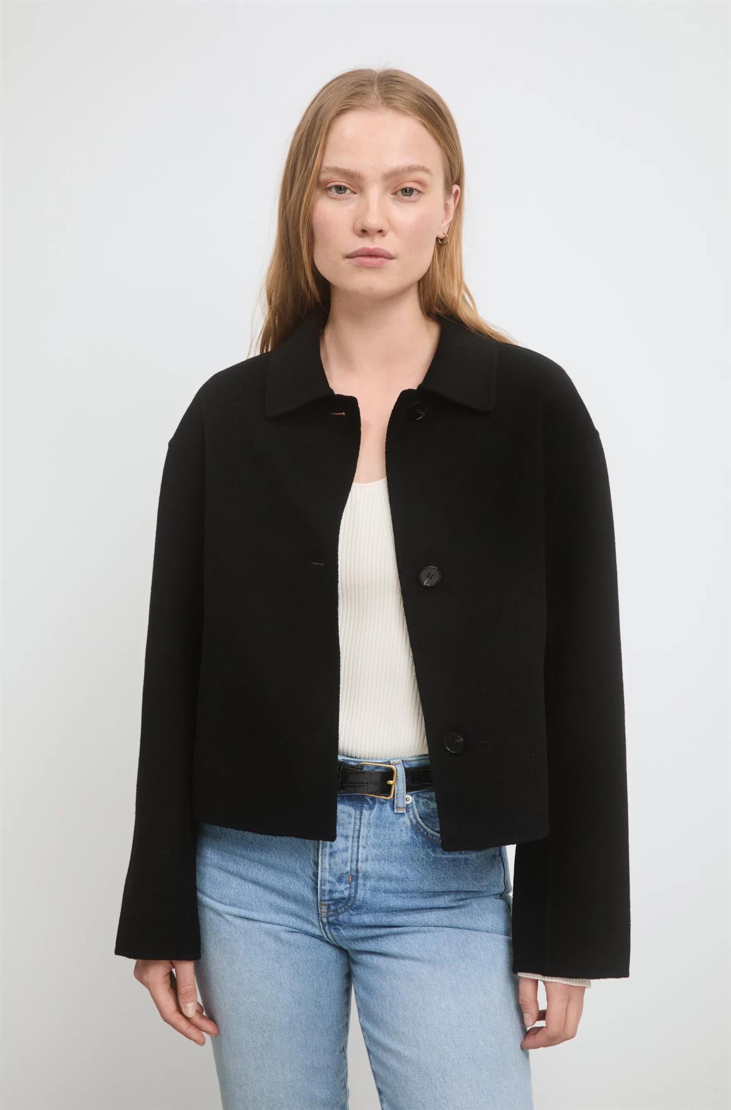 The Adara Jacket is the perfect layering essential during the transitional months. Made from a warm wool blend, in delicate cream and black. It's designed for a slightly boxy and straight fit with collar, button closure at front and discreet slip pockets